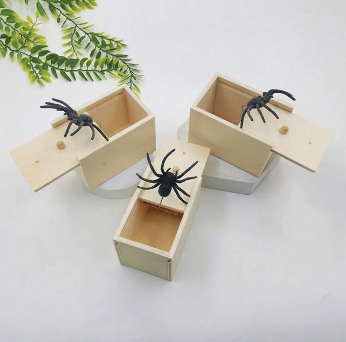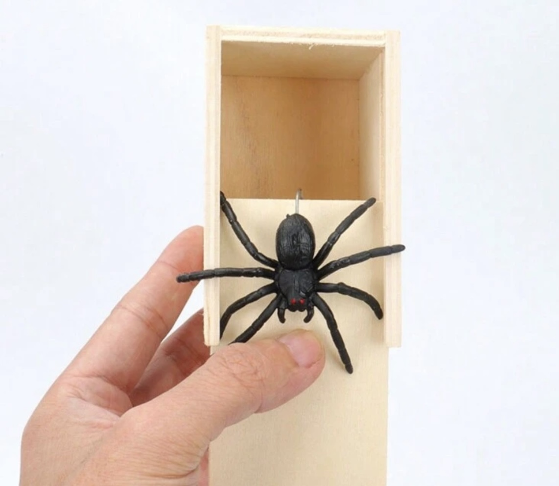 Akár tréfás ajándék átadásra is használhatod a dobozt, ha elrejtesz benne egy kis ajándékot. De önmagában is alkalmas megtréfálni valakit. Nyisd ki a dobozd és a pók egyből előugrik, ezzel halálra rémisztve a mit sem sejtő áldozatot.