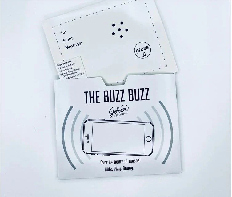 Aktiválást követően bizonyos időközönként telefonrezgő hangot játszik akár 8 órán át, amíg az elem tart. Vegyük ki a kártyát a tokból, a press gombbal kipróbálhatjuk a hangzást. Szedjük le a ragasztó fóliáját, majd tapasszuk egy rejtett felületre, hogy nehéz legyen megtalálni a kártyát (asztal alá, szekrény mögé, bármilyen eldugott helyre). Húzzuk ki az aktiváló címkét, majd hagyjuk el a helyszínt. A kártya időközönként telefonrezgő hangot ad elég hangosan és elég sokáig. Tökéletes irodai csínyekhez, otthonra vagy barátokhoz.